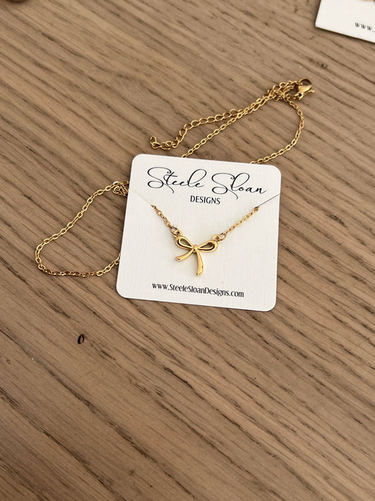 TRENDSETTER Gold Bow Necklace - Bows are In for Spring!