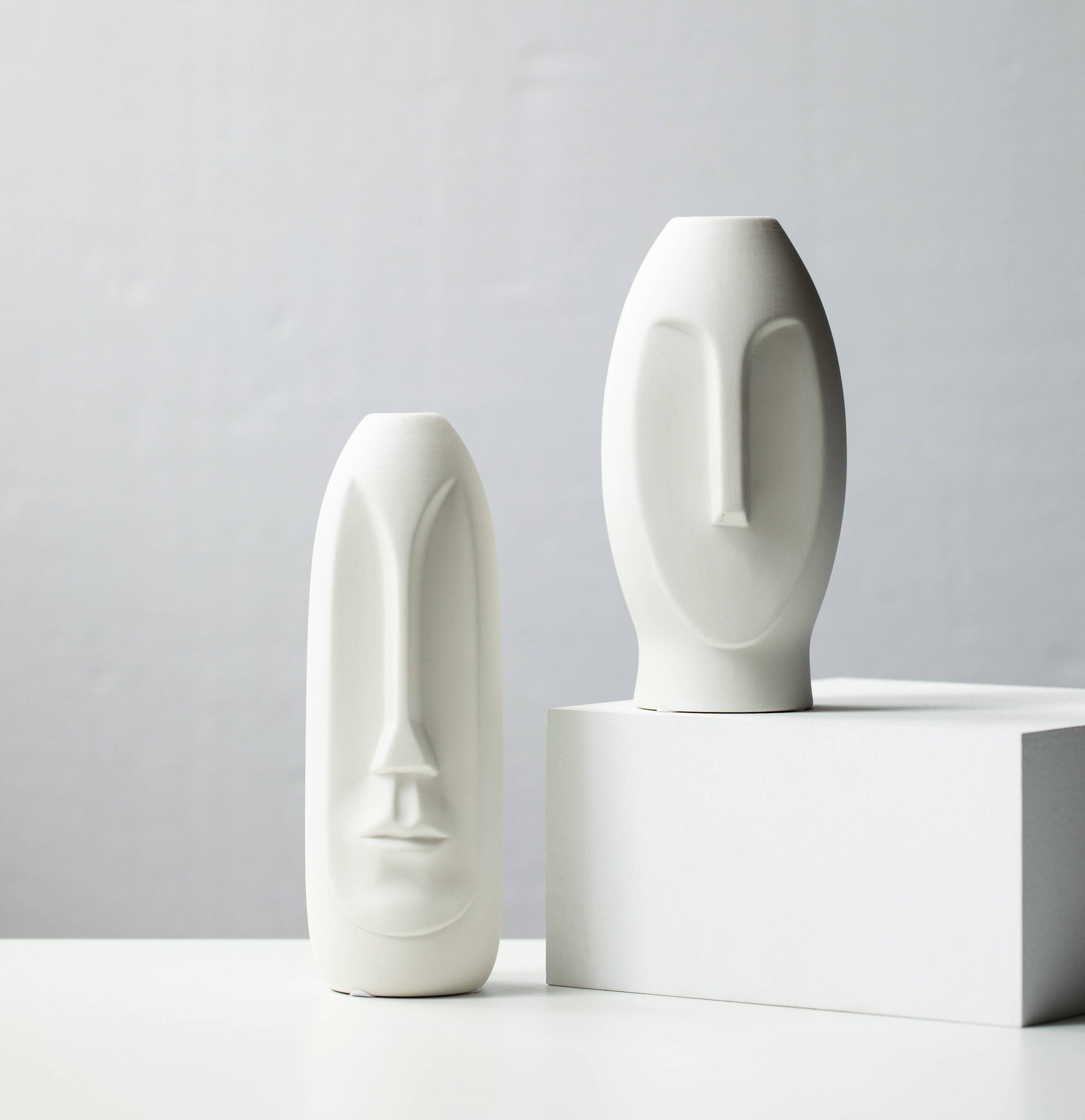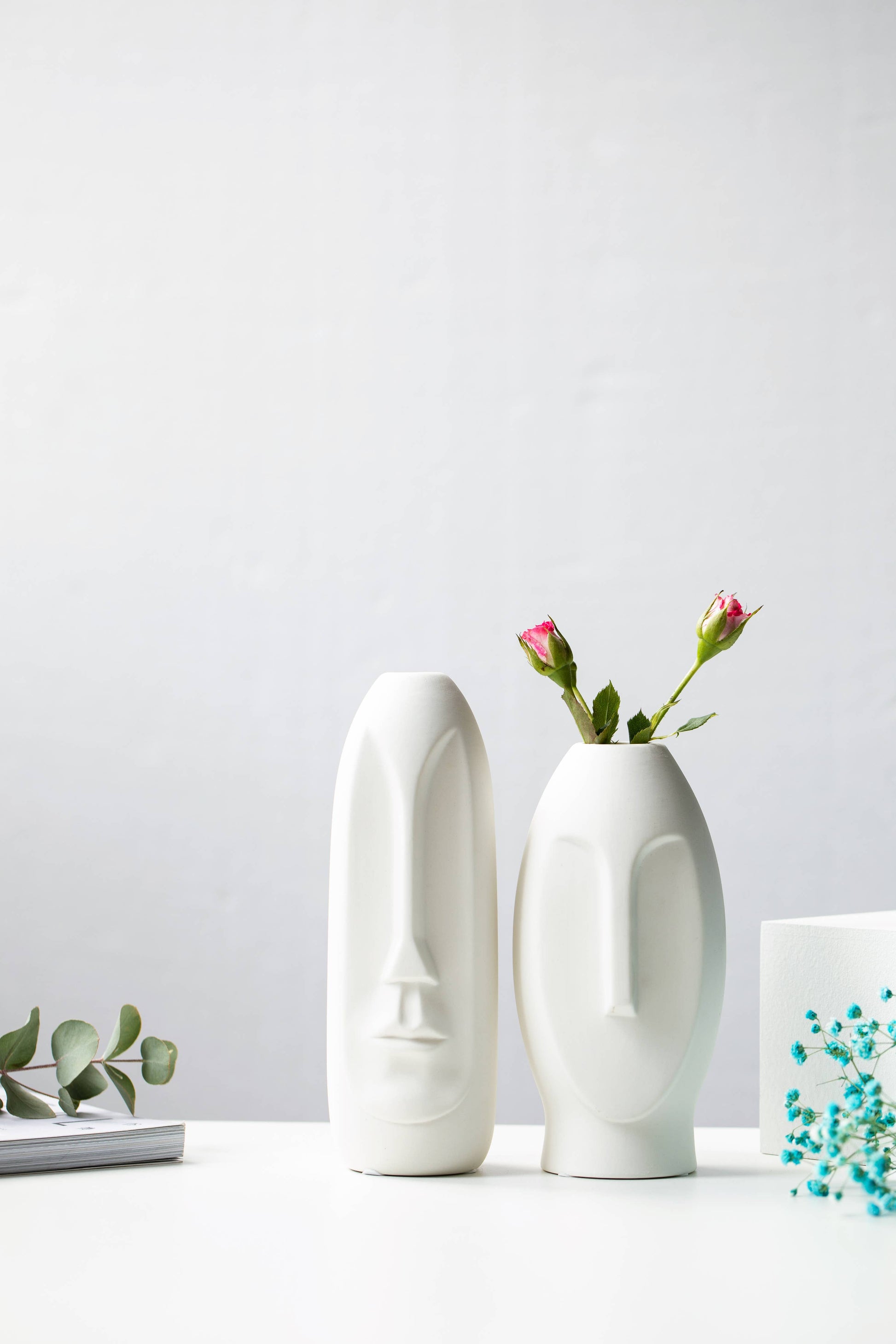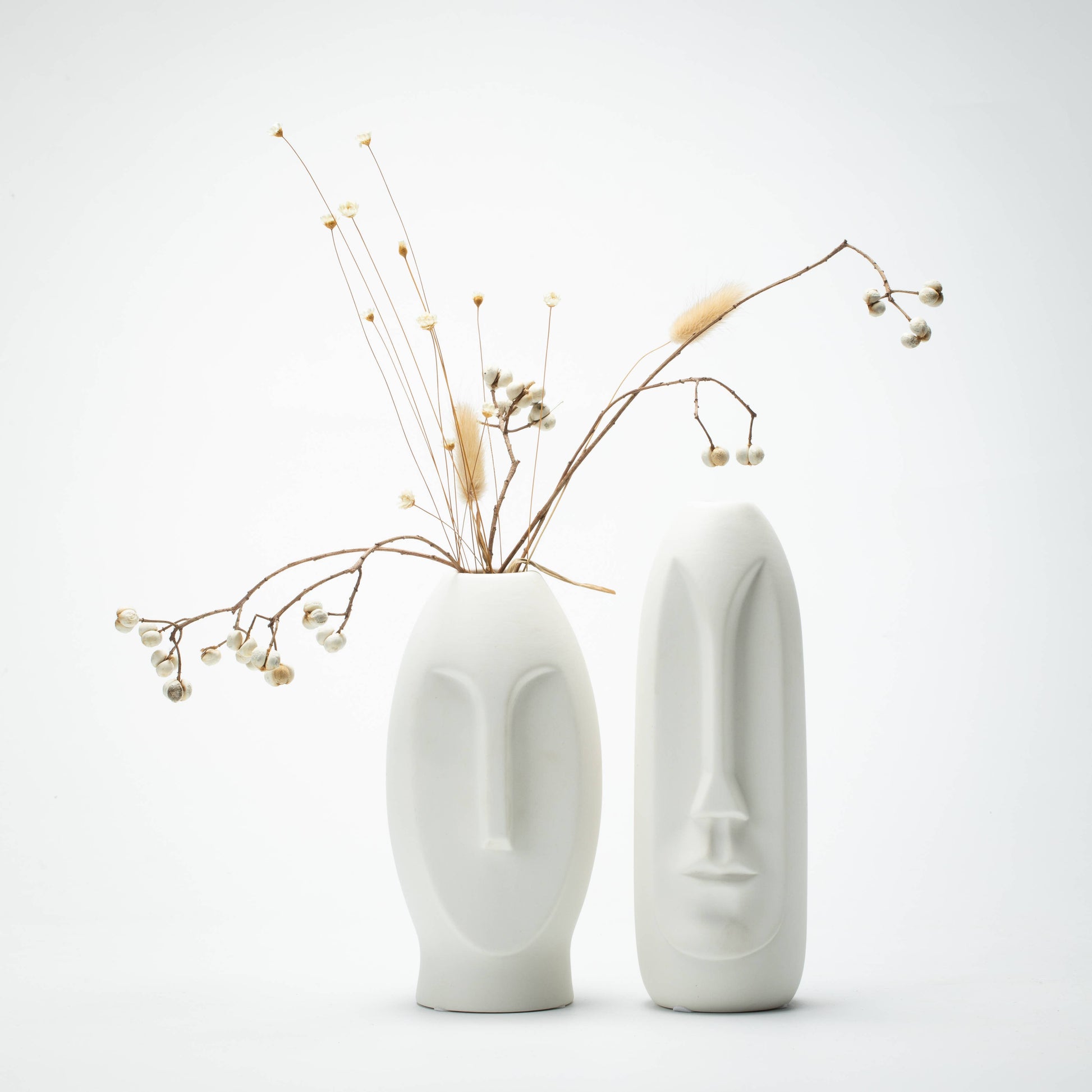 Face Vase Set of 2, White Modern Pampas Vases, Nordic Style