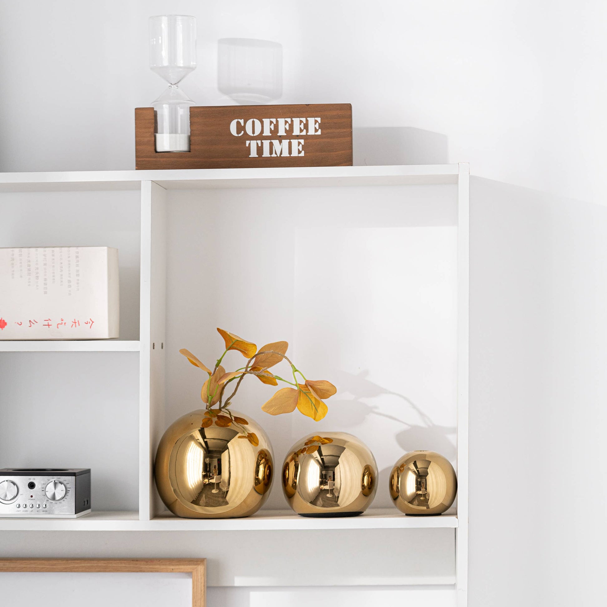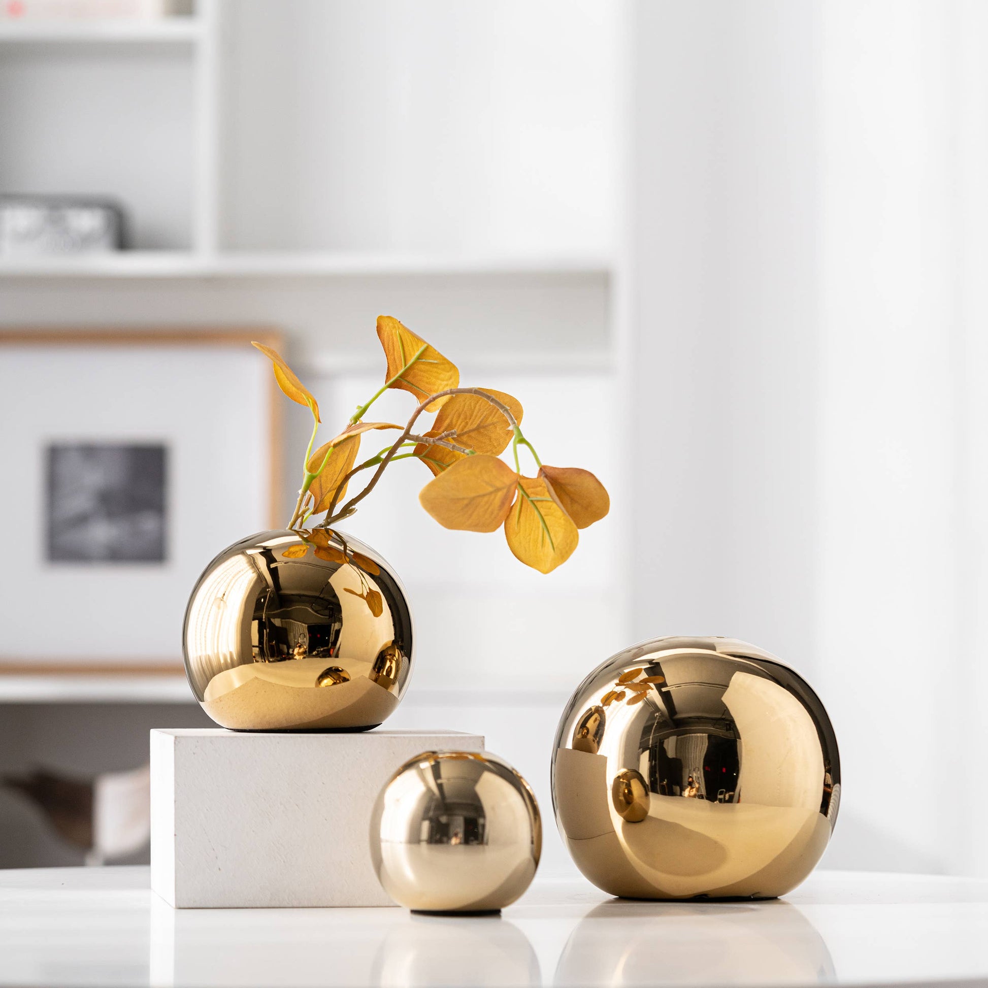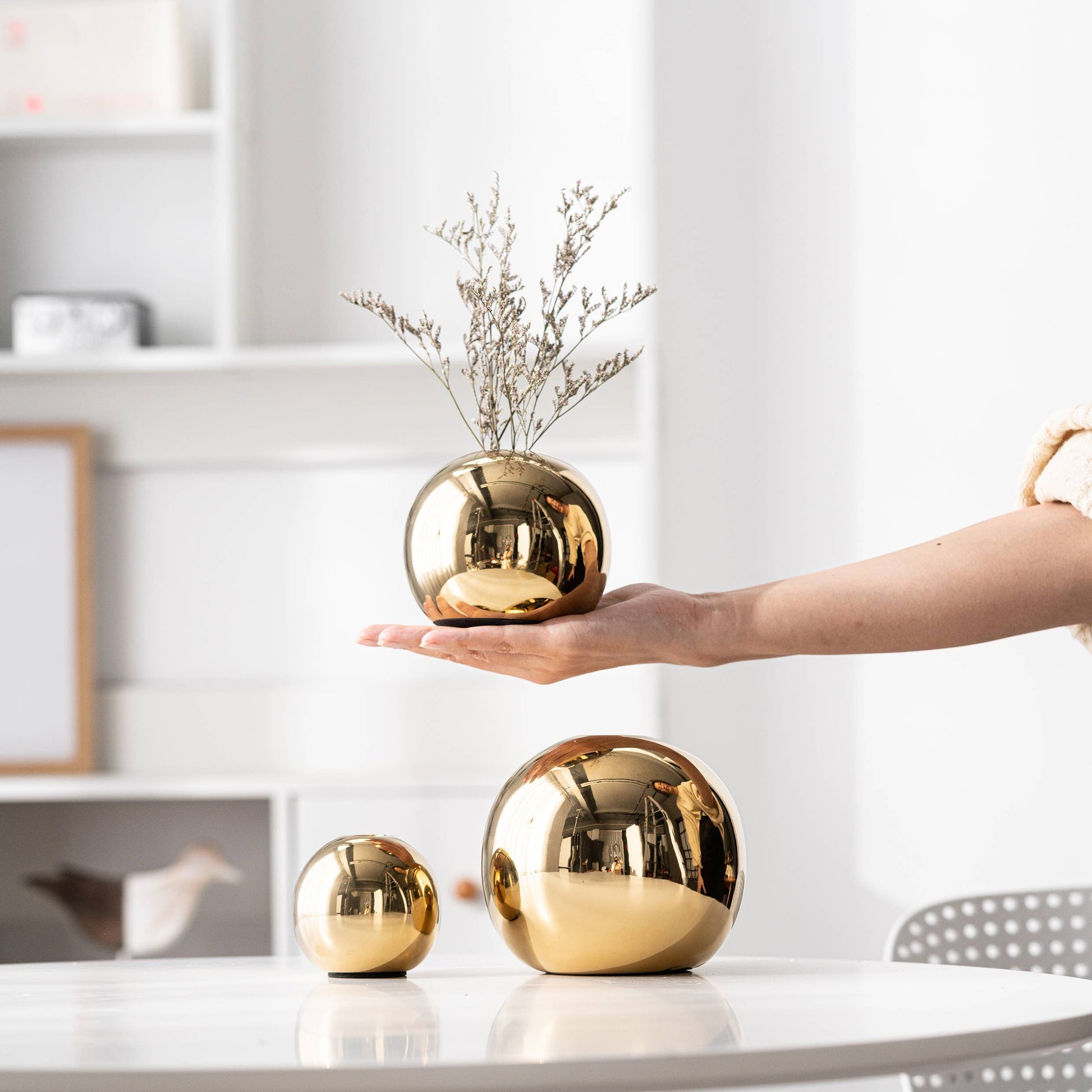 TOUCH OF MINIMALISM:This gold globe vase set adds a touch of modern minimalism to wherever placed. Best of all? The round bling vase set can be used as flower vase or only as on statue decor object.