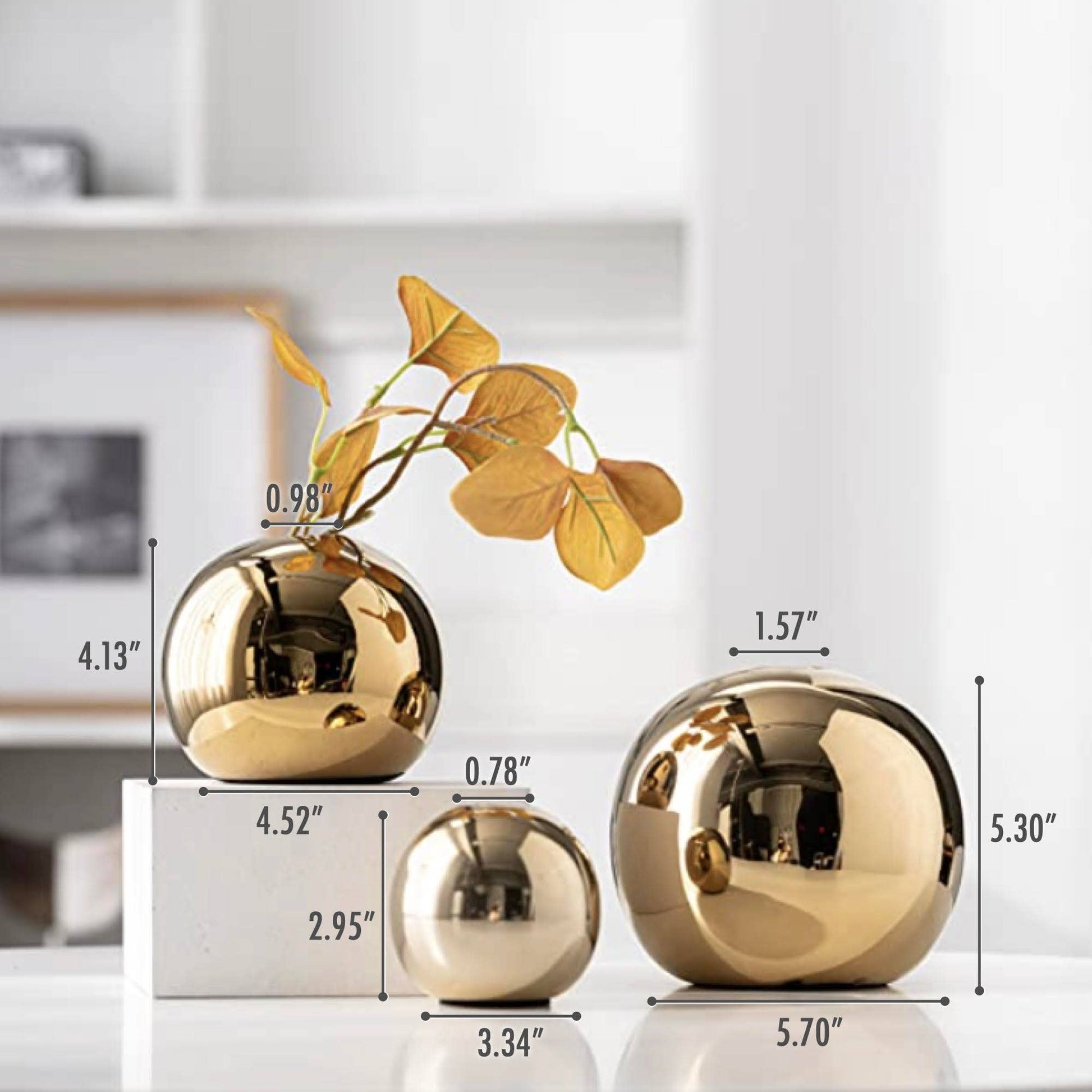 Gold Globe Vase Set of 3, Round Vase Home Decor, Bud Vase