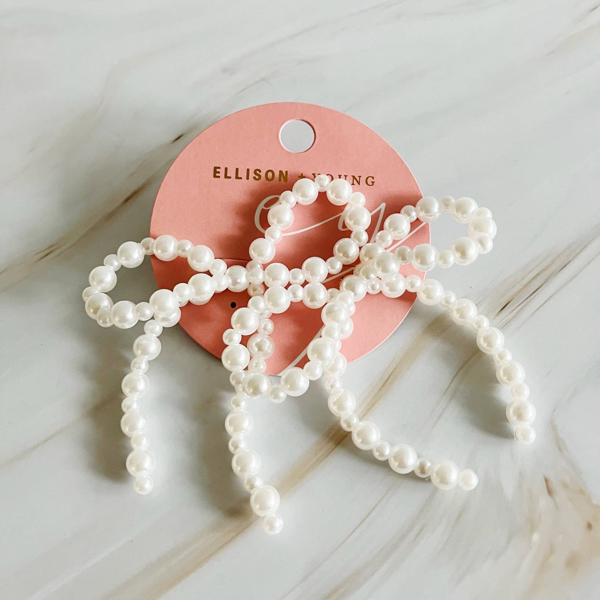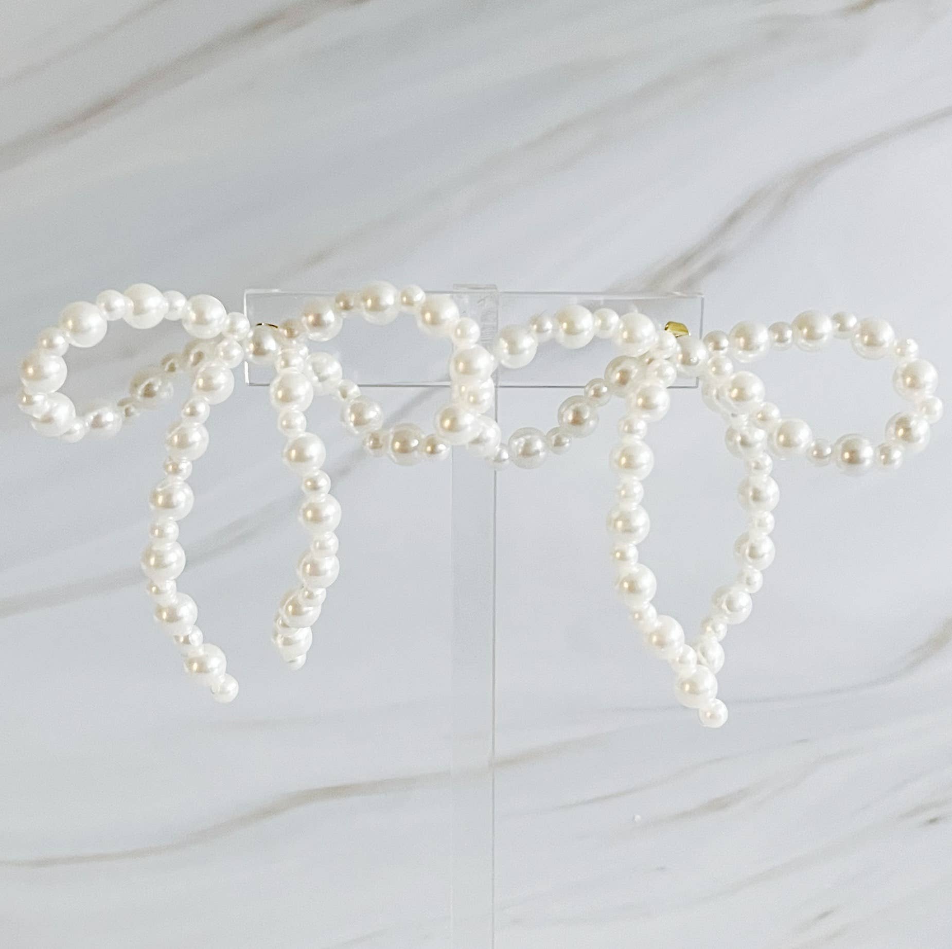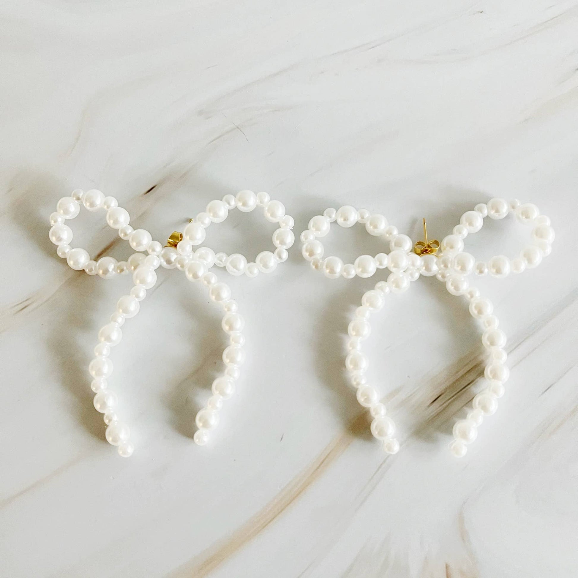 These Pearl Beaded Bow Earrings are adorably chic, featuring a beautiful bow design with elegant pearls. Elevate any outfit with these stylish and timeless accessories. Perfect for adding a touch of sophistication to your look.