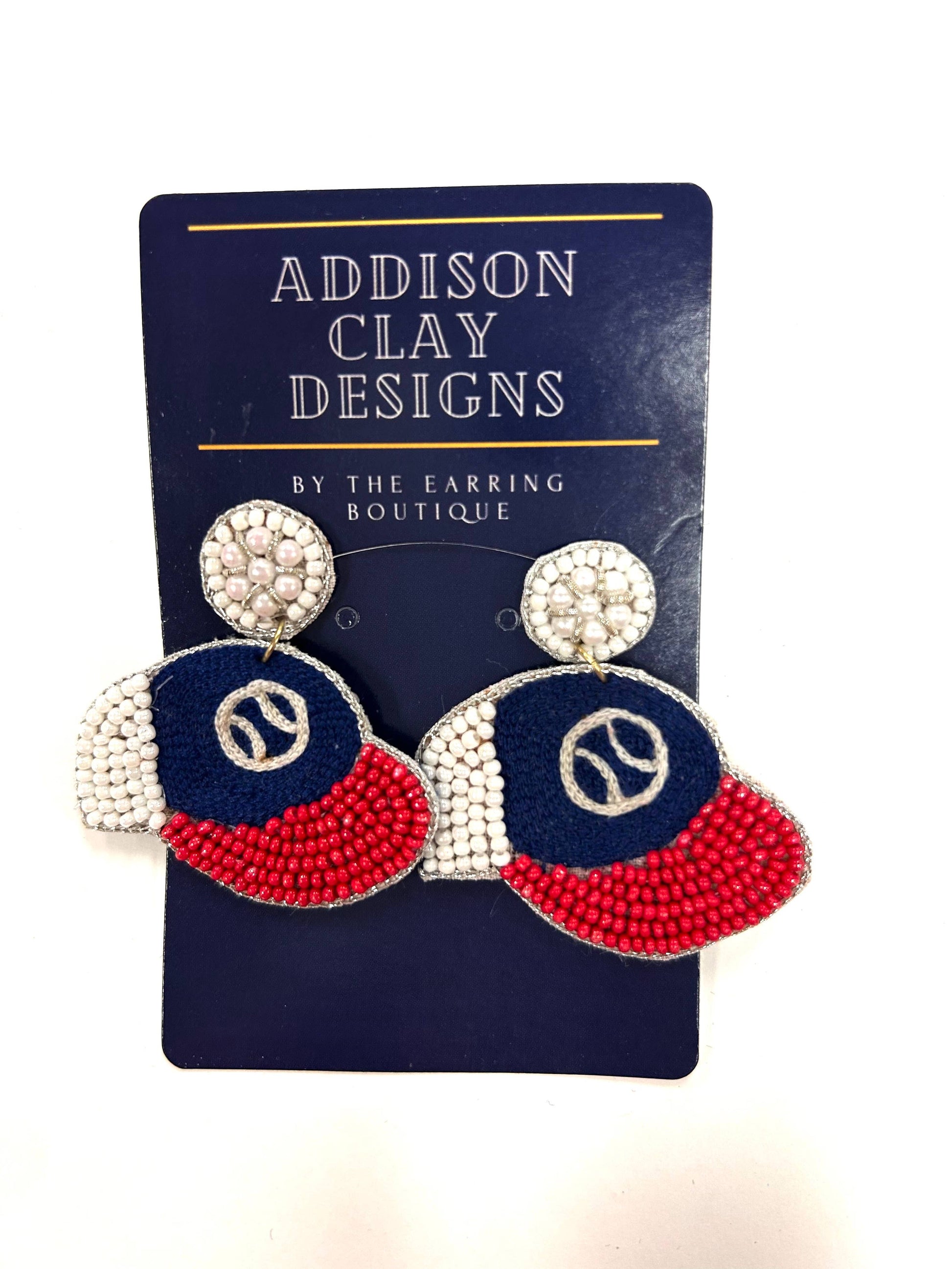 Red & Blue Beaded Baseball Earrings