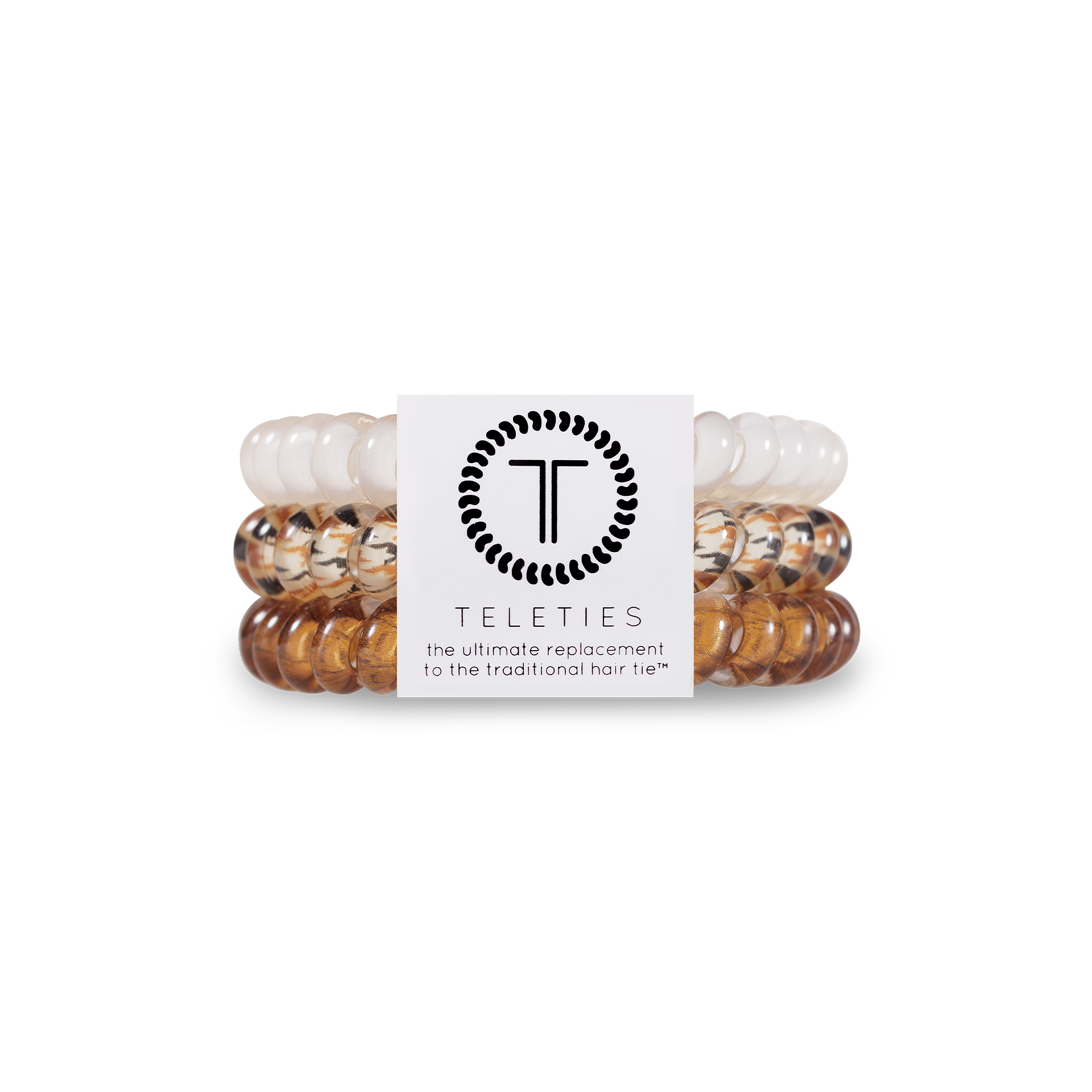 Hold your hair and enhance your style with TELETIES. The strong grip, no rip hair ties that double as a bracelet. Strong, pretty and stylish, TELETIES are designed to withstand everyday demands while taking your look to the next level.