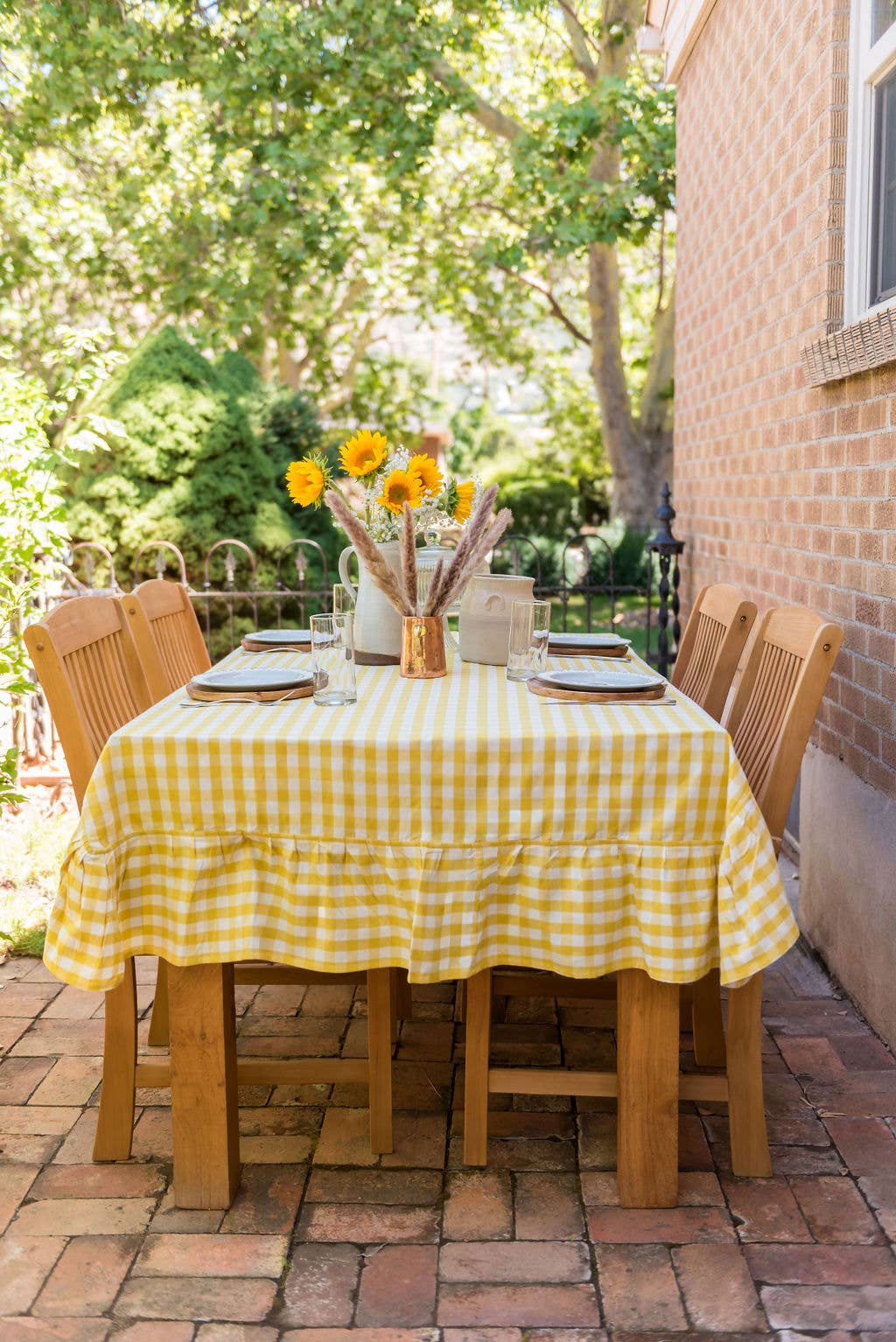 Yellow Ruffled Gingham Tablecloth: 60" x 120"